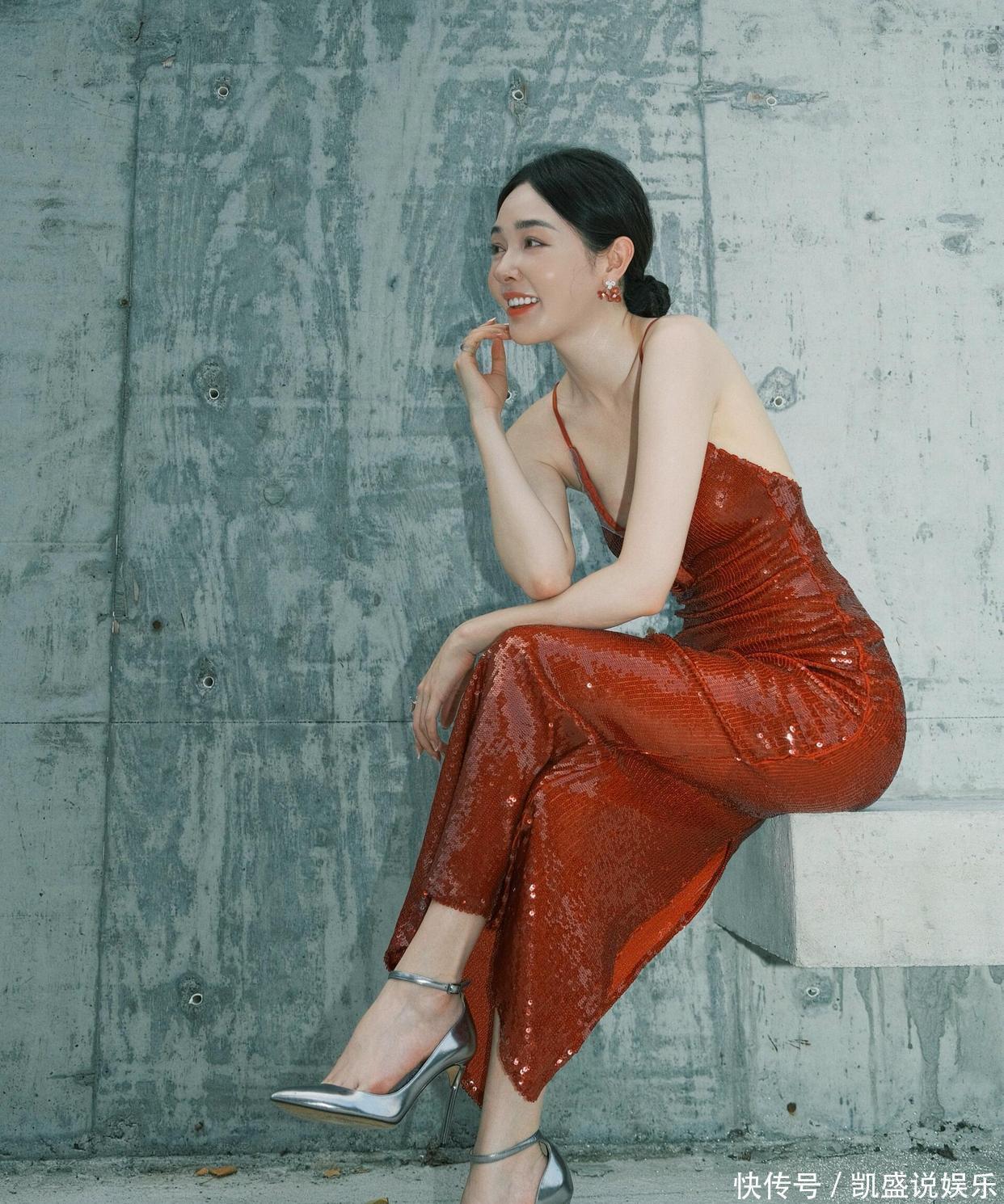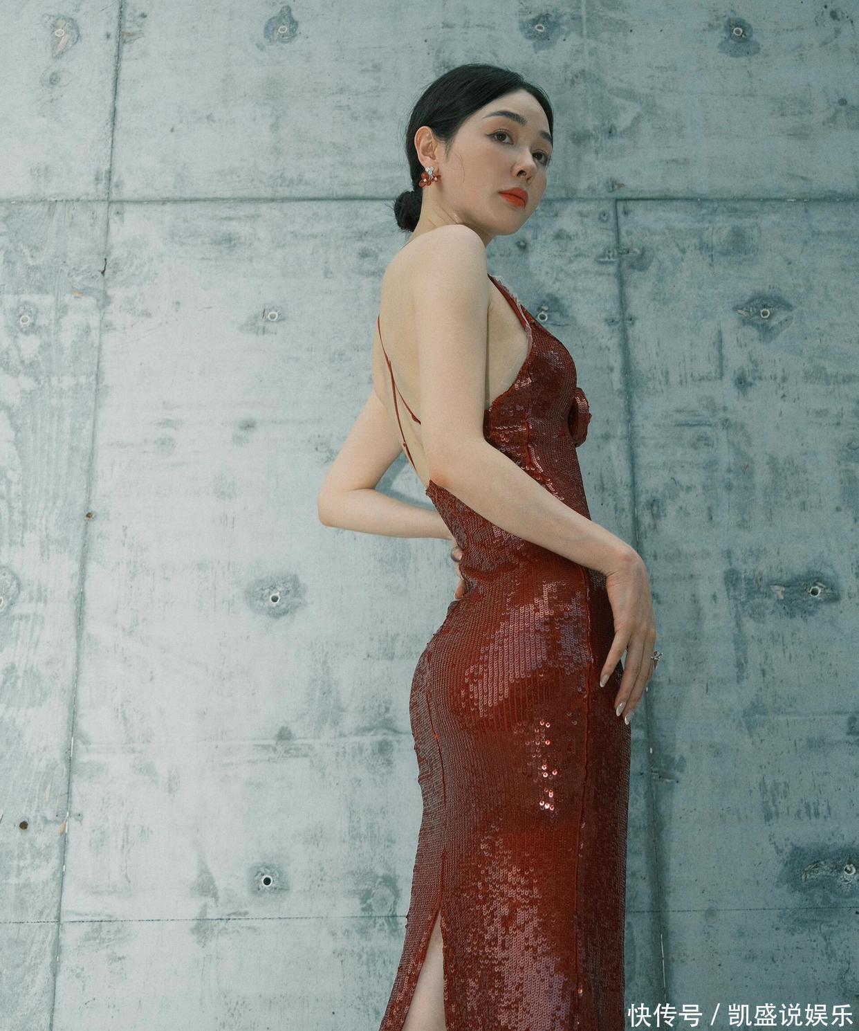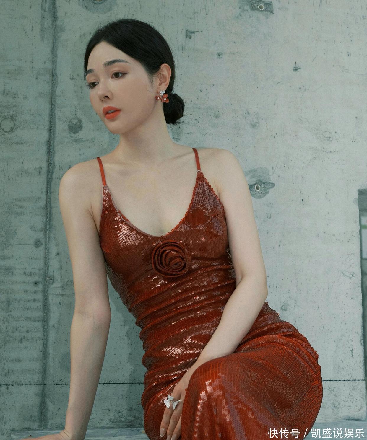 重点说说这裙子的 “小心机”:深 V 领刚好卡在锁骨下两指,既不越界又把肩颈线拉得跟天鹅似的,裙摆开叉到大腿根,踩银色高跟鞋时腿一抬,那弧度直接把 “性感” 俩字写脸上。而且这亮片不是普通货,是那种会随角度变光泽的料子,走动时跟裹了层流动的红光似的,难怪造型师说这是 “把星河缝在裙子上”。插个八卦:这姐们儿私下是个 “狠人”—— 去年为了演投行精英,硬是把自己塞进高跟鞋练了两个月仪态,现在穿这细带裙,肩都没塌过一秒。之前看她《浮图缘》里演李美人,还是柔柔弱弱的样子,结果一换礼服直接气场两米八,这 “剧抛型身材” 谁看了不佩服?最后总结:这造型能出圈,一半是裙子选得妙,一半是她把 “细节控” 焊在身上 —— 比如指间那枚蝴蝶戒指,翅膀刚好衬得手更纤细,耳环选同色系小花款,既不抢裙子风头又能点睛。建议各位兄弟把这组图存成 “穿搭教科书”,以后看女星红毯就知道:真正的美,是把 “艳” 和 “雅” 捏得刚好。